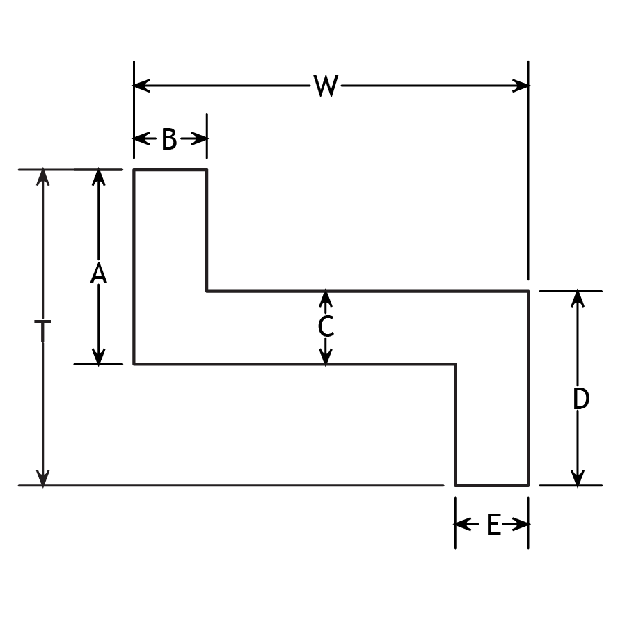 | Part No. | E | D | C | B | A | W | T | Material Code | Color | Material | Length | Quantity |